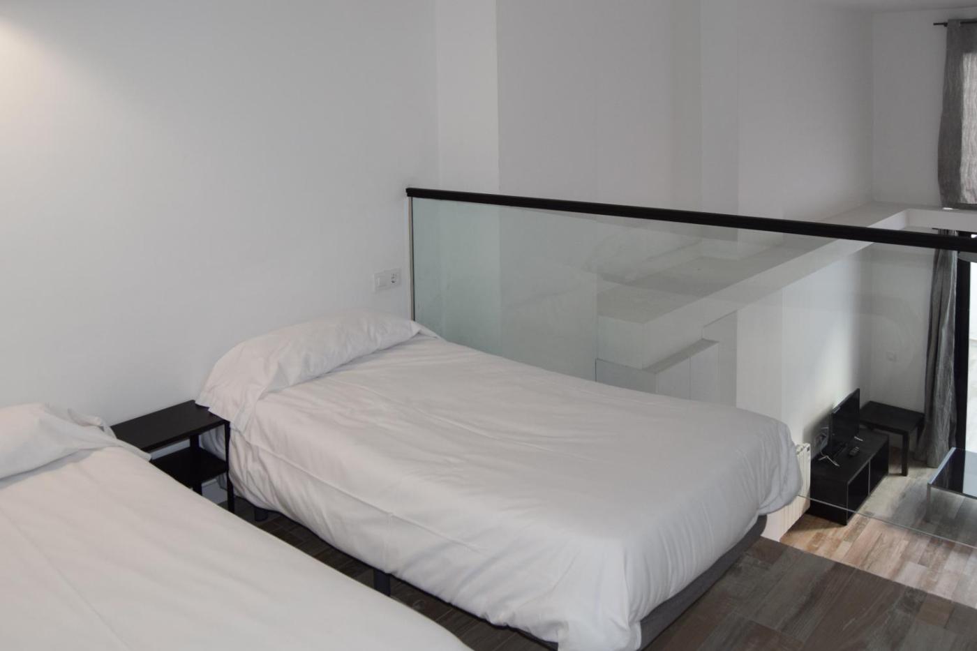 Apartamento Superior. Este apartamento es amplio y cuenta con sala de estar, 2 dormitorios independientes y baño con ducha y secador de pelo. Incluye cocina equipada con fogones, nevera, utensilios y microondas. Este apartamento también dispone de balcón con vistas a un patio interior, lavadora y TV de pantalla plana. Tiene 3 camas.